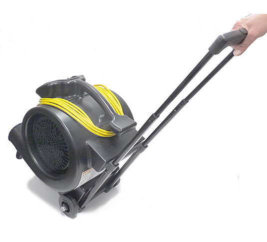 Dry surfaces faster with an air mover known for its durability and efficiency. Choose from three positions and three speeds so the commercial dryer / air mover can quickly dry carpet, hard floors, fresh paint, concrete sealer and more. The air mover’s innovative design allows you to stack multiple units and an optional wheel cart provides effortless maneuverability.