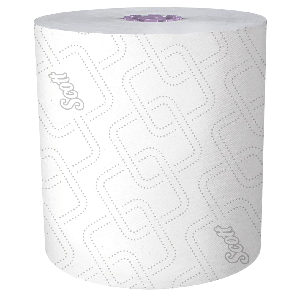 - 950’/Roll, 6 Scott® Essential High-Capacity Hard Roll Towel Rolls/Case; 5,700’/Case; with Elevated Design and Absorbency Pockets™; for Purple Core Dispensers; White; Unperforated