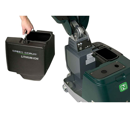 The Nobles Speed Scrub® 15B Battery Walk-Behind Micro Scrubber can replace mop and bucket cleaning for powerful cleaning in tight spaces.