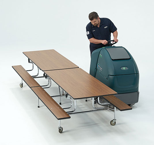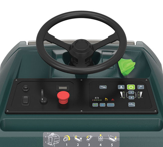 - Operate comfortably and easily with ergonomics and controls designed for a stand-on scrubber.
