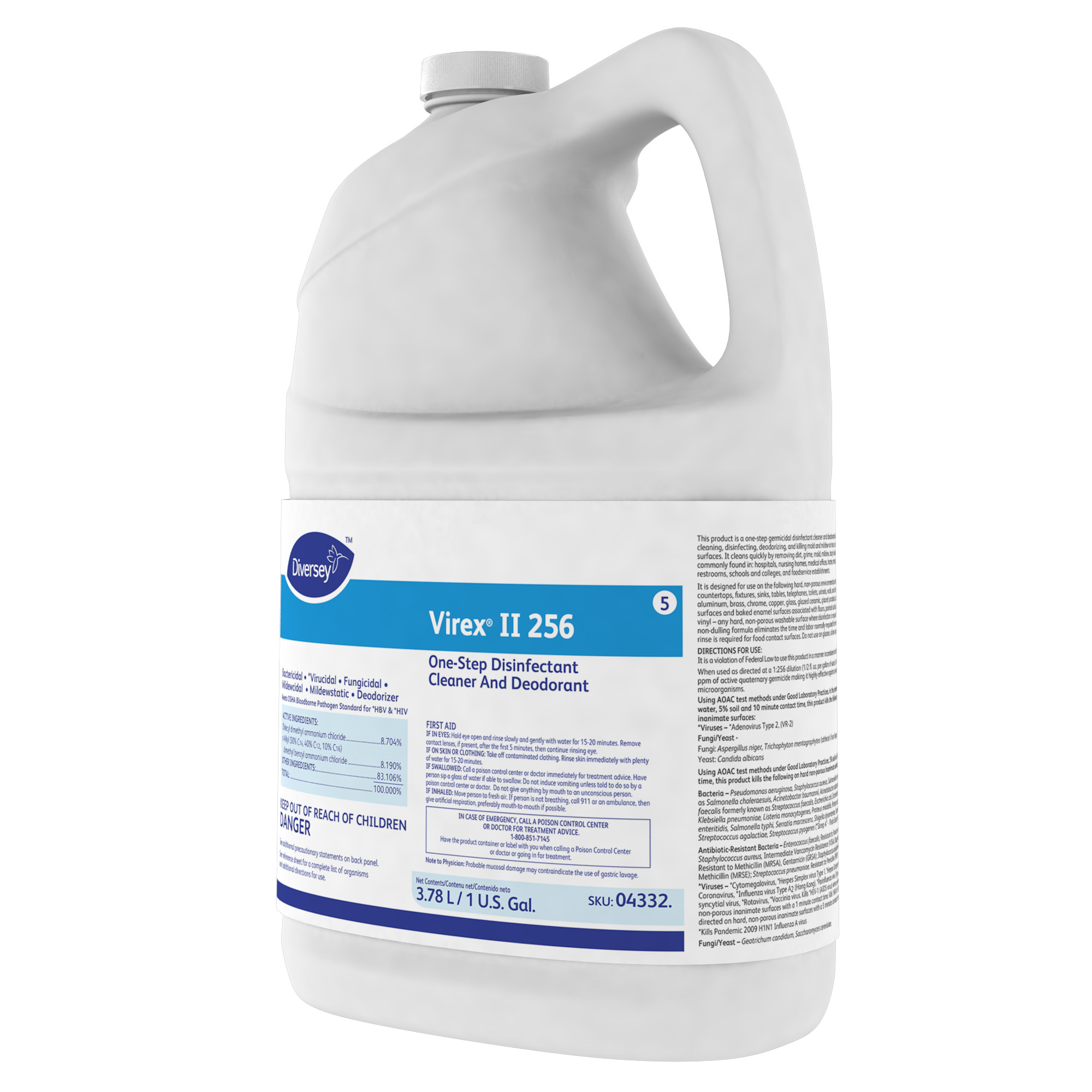 A one-step, quaternary-based disinfectant cleaner concentrate providing broad spectrum disinfection at 1:256 dilution. Use in healthcare and other facilities where cleaning and prevention of cross-contamination are critical. Bactericidal, virucidal and fungicidal. Kills MRSA and VRE. Meets bloodborne pathogen standards for decontaminating blood and body fluids. Blue in color with a minty scent.